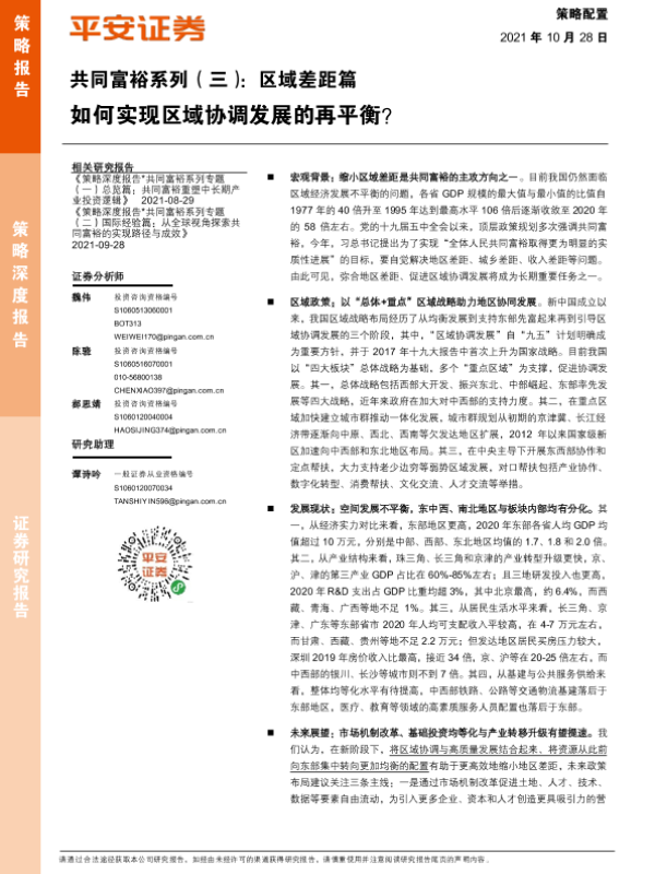 【平安证券】【20211028】共同富裕系列(三):区域差距篇,如何实现区域协调发展的再平衡-24页