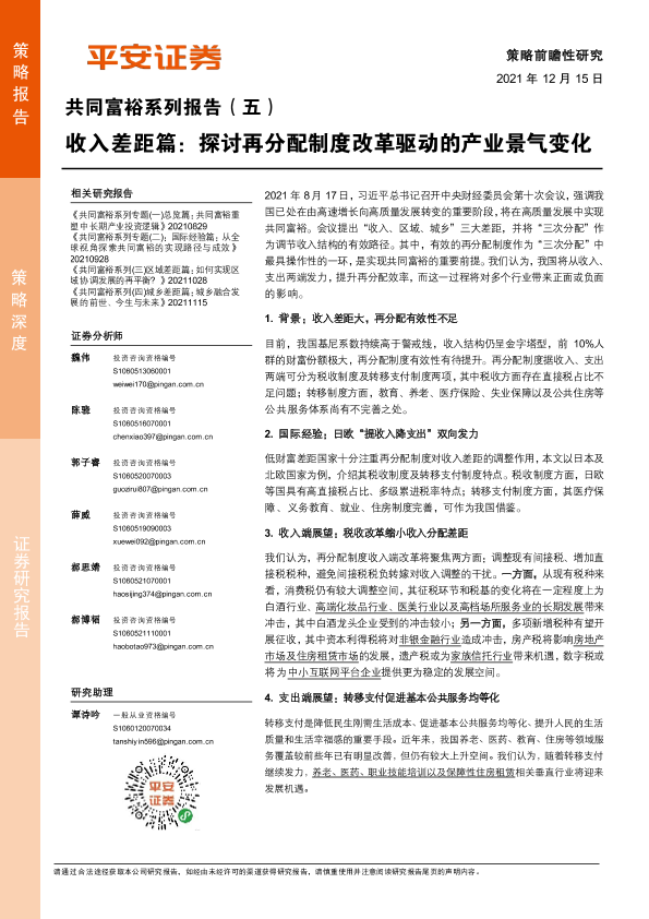 【平安证券】【20211215】共同富裕系列(五):收入差距篇,探讨再分配制度改革驱动的产业景气变化-36页