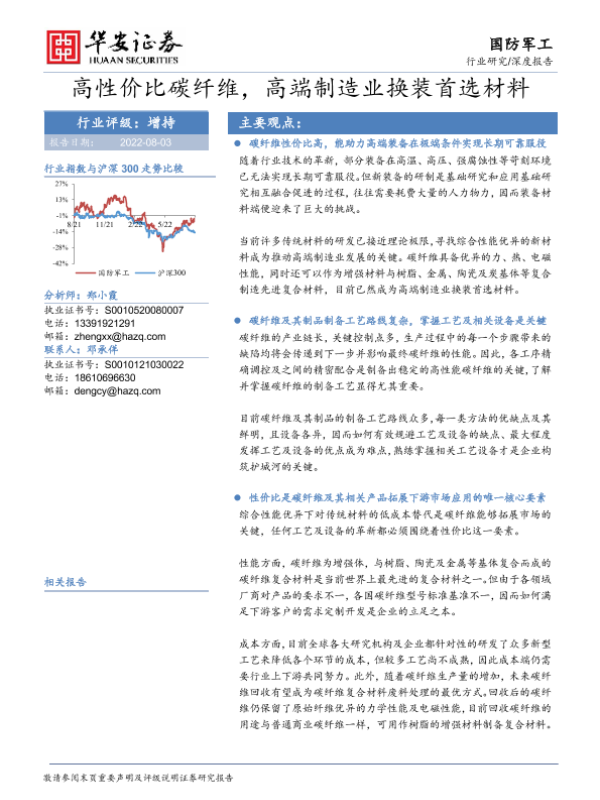 国防军工 性价比 材料科学 碳纤维 高端制造业