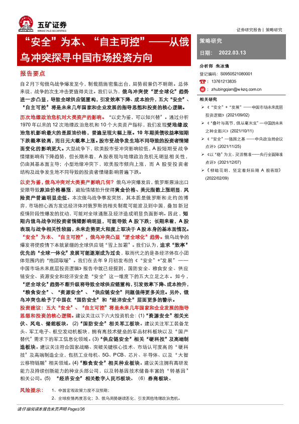【五矿证券】【20220313】从俄乌冲突探寻中国市场投资方向:“安全”为本、“自主可控”-36页