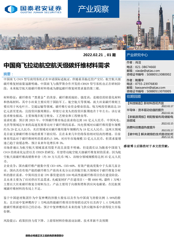 【国泰君安证券】【20220221】产业观察:中国商飞拉动航空航天级碳纤维材料需求-20页