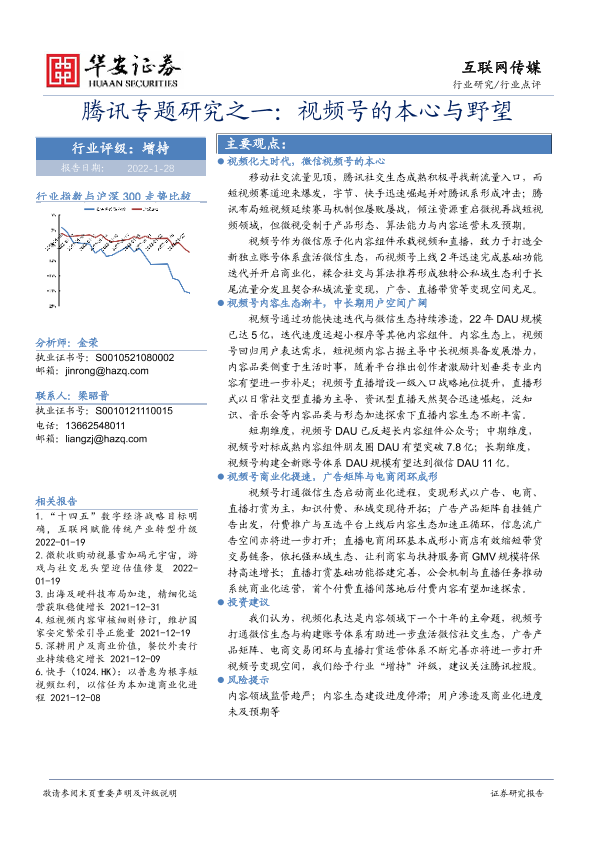 【华安证券】【20220128】2022.01.28-互联网传媒行业腾讯专题研究之一:视频号的本心与野望-30页