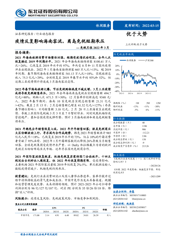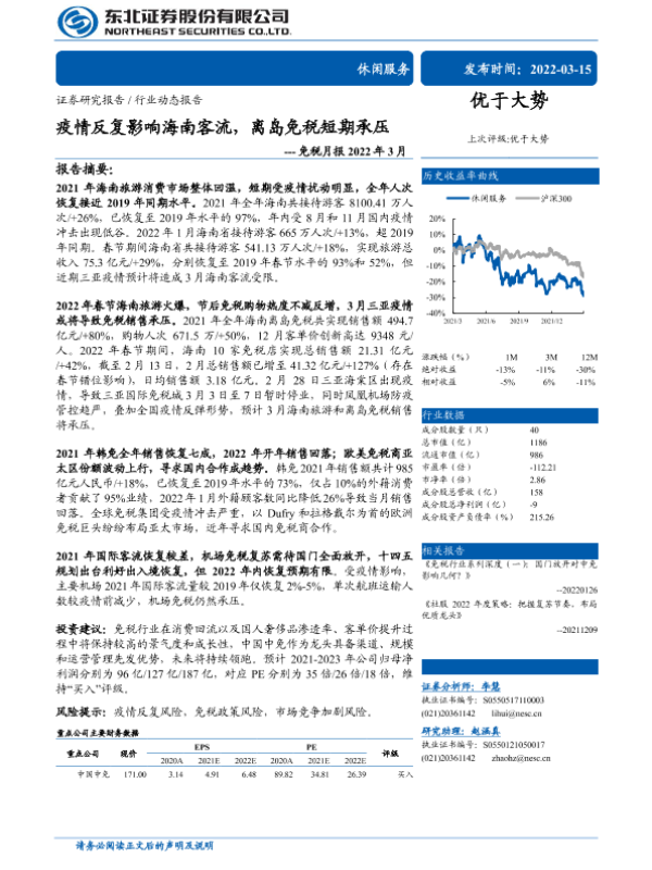 【东北证券】【20220315】休闲服务行业免税月报2022年3月:疫情反复影响海南客流,离岛免税短期承压-20页