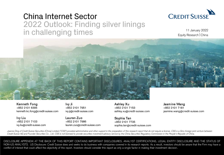 【瑞信】【20220111】中国互联网行业2022年展望:在充满挑战的时代找到一线希望-184页