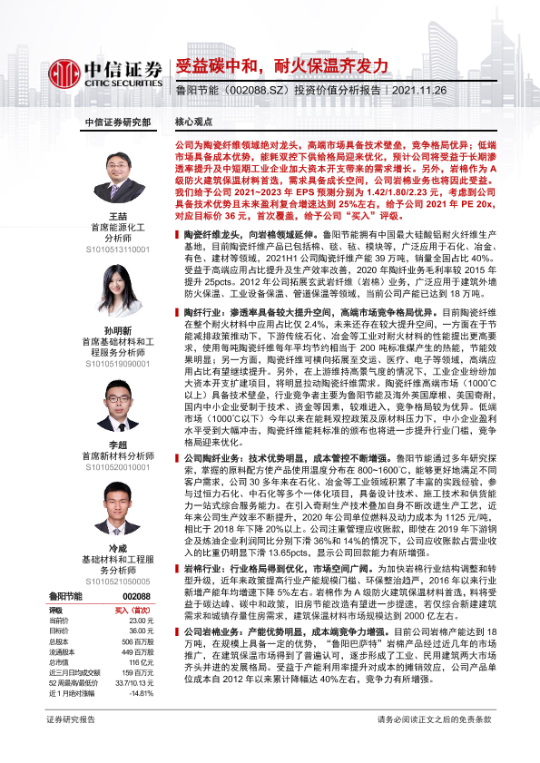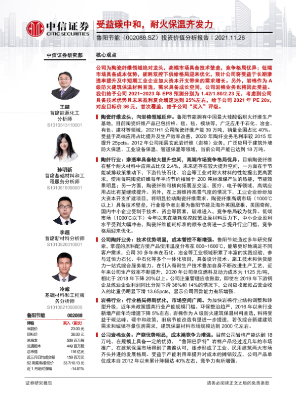 【中信证券】【20211126】鲁阳节能-投资价值分析报告:受益碳中和,耐火保温齐发力-31页