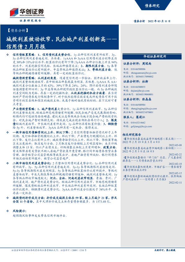 【华创证券】【20220311】信用债2月月报:城投利差被动收窄,民企地产利差创新高-22页