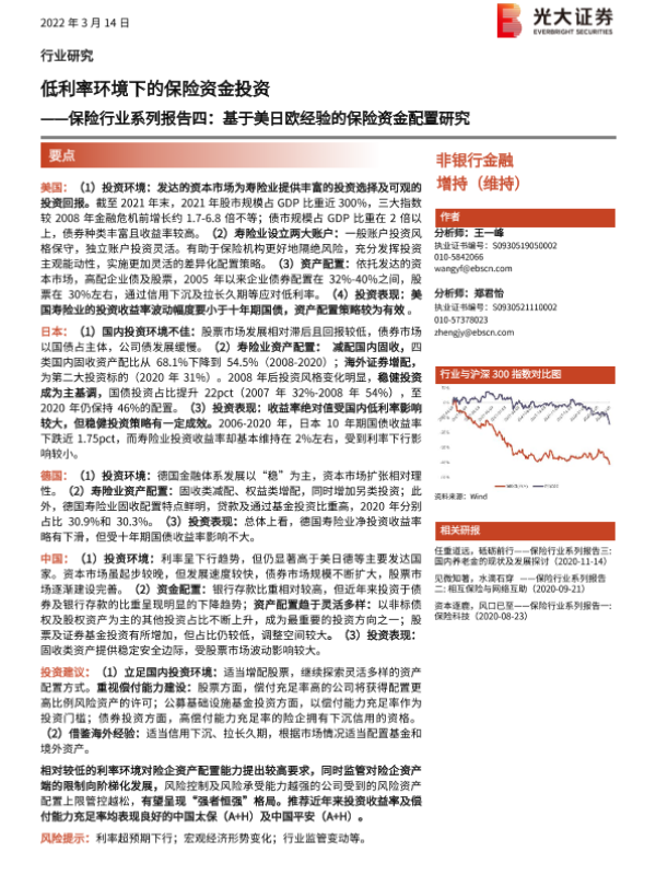 【光大证券】【20220314】保险行业系列报告四:基于美日欧经验的保险资金配置研究,低利率环境下的保险资金投资-37页