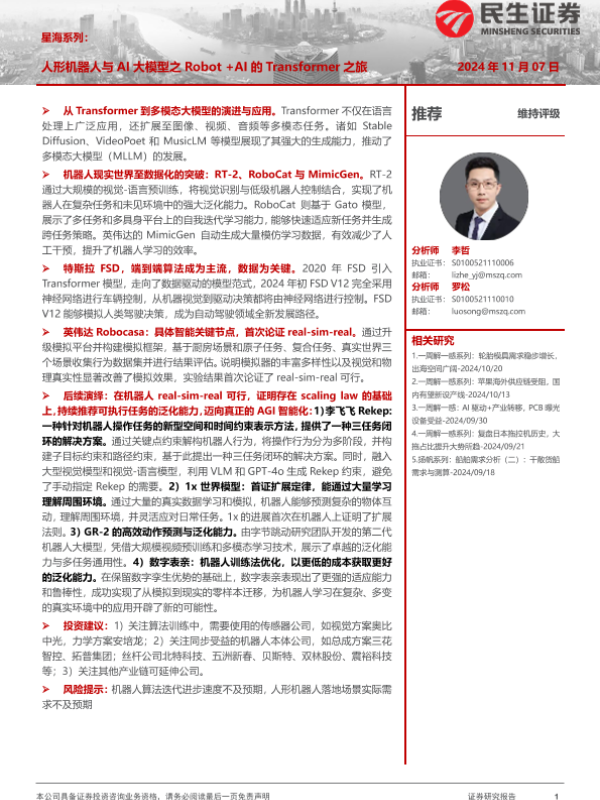 【民生证券】【20241107】星海系列:人形机器人与AI大模型之RobotAI的Transformer之旅-54页