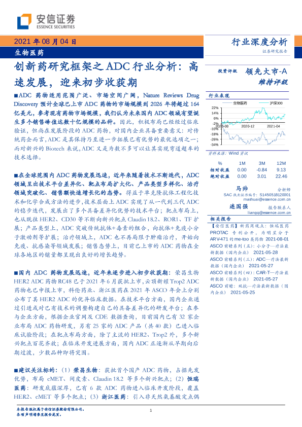 【安信证券】【20210804】生物医药行业创新药研究框架之ADC行业分析:高速发展,迎来初步收获期-32页