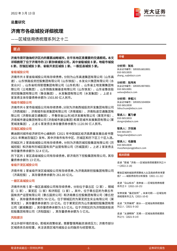 【光大证券】【20220313】区域信用债梳理系列之十二:济南市各级城投详细梳理-44页