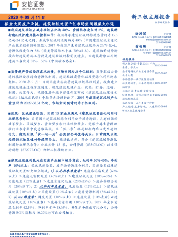 【安信证券】【20200911】掘金大固废产业链,建筑垃圾处理千亿市场空间蕴藏大机遇-25页