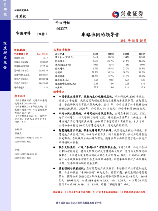 【兴业证券】【20210825】千方科技:车路协同的领导者-39页