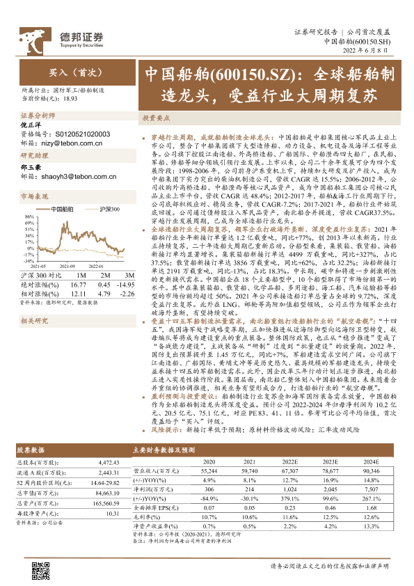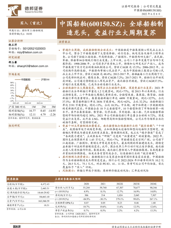 【德邦证券】【20220608】中国船舶:全球船舶制造龙头,受益行业大周期复苏-59页