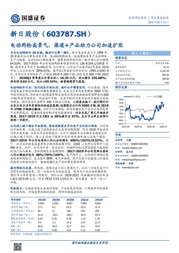 【国盛证券】【20200915】新日股份:电动两轮高景气,渠道+产品助力公司加速扩张-24页