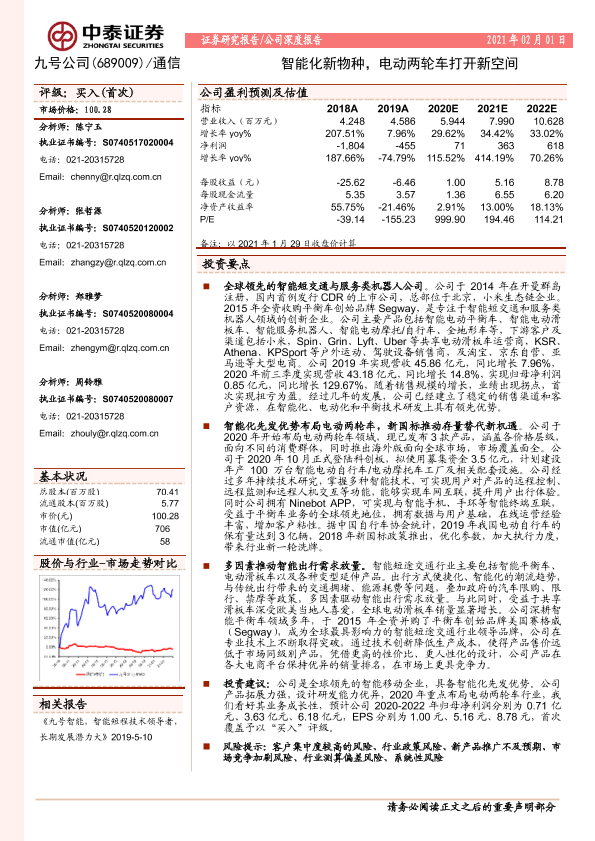 【中泰证券】【20210201】九号公司:智能化新物种,电动两轮车打开新空间-33页
