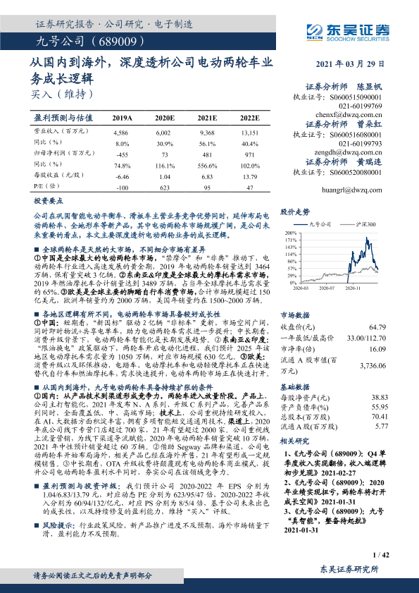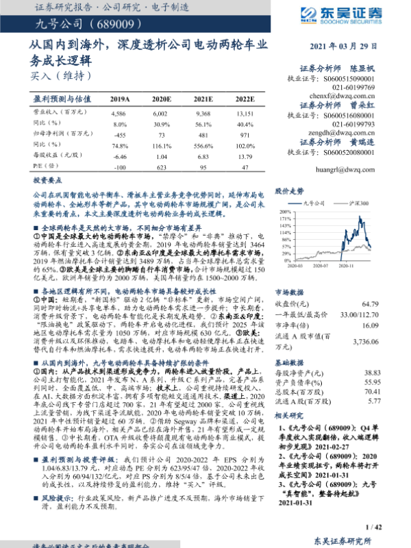 【东吴证券】【20210329】九号公司:从国内到海外,深度透析公司电动两轮车业务成长逻辑-42页