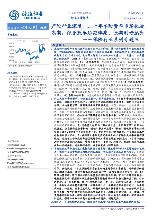 【海通证券】【20200910】产险行业深度:二十年车险费率市场化迎高潮,综合改革短期阵痛、长期利好龙头-33页