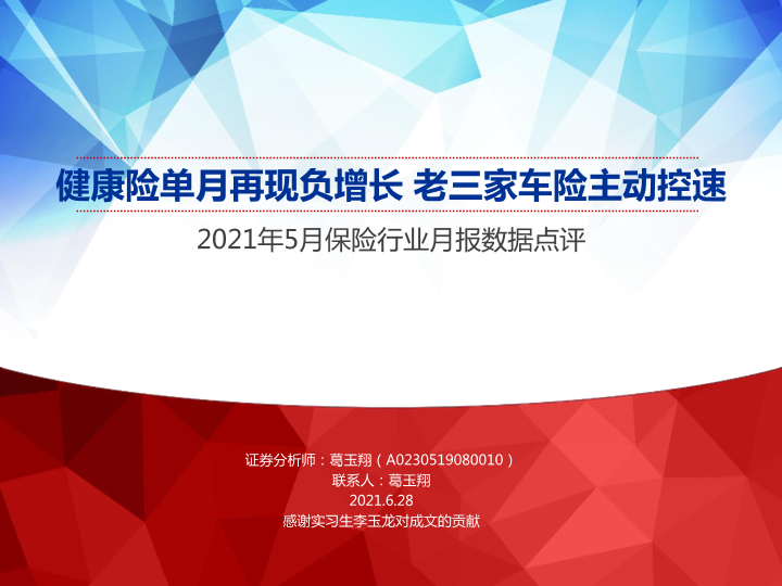 【申万宏源】【20210628】2021年5月保险行业月报数据点评:健康险单月再现负增长,老三家车险主动控速-28页
