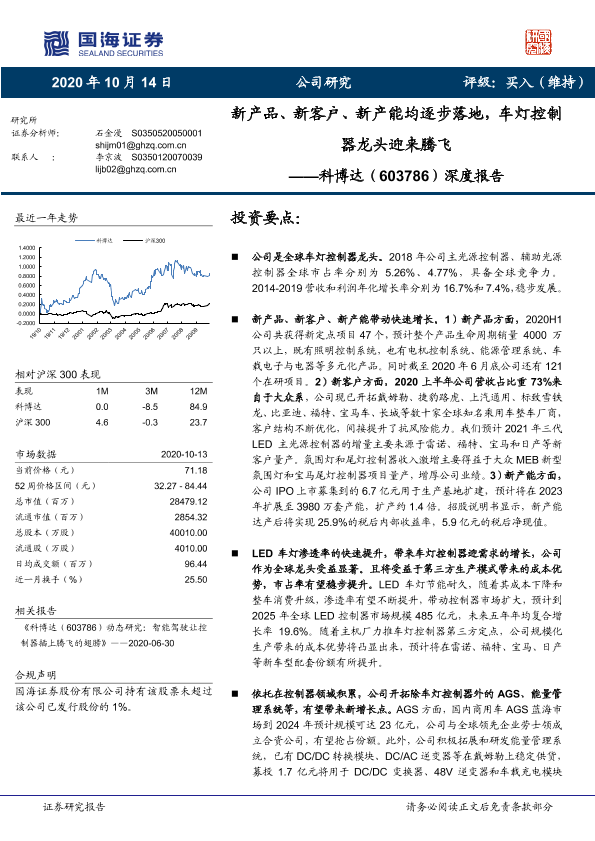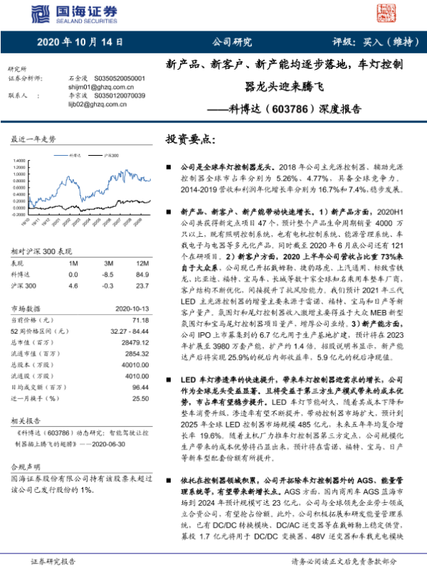 【国海证券】【20201014】科博达:新产品、新客户、新产能均逐步落地,车灯控制器龙头迎来腾飞-33页