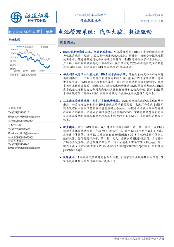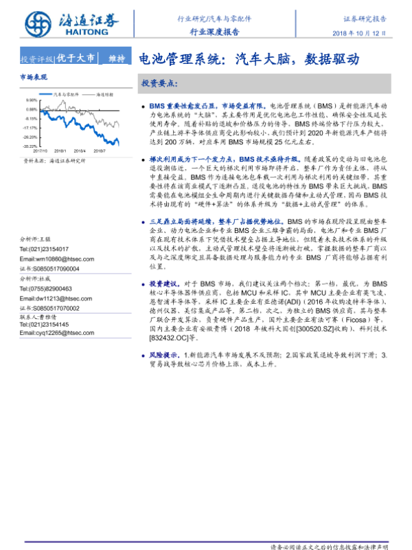 【海通证券】【20181012】汽车与零配件行业电池管理系统:汽车大脑,数据驱动-24页