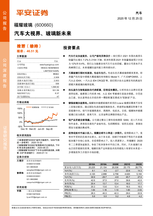 【平安证券】【20201225】福耀玻璃:汽车大视界、玻璃新未来-21页