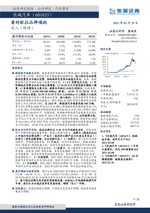 【东吴证券】【20210225】2021.02.25-长城汽车-看好欧拉品牌崛起-22页