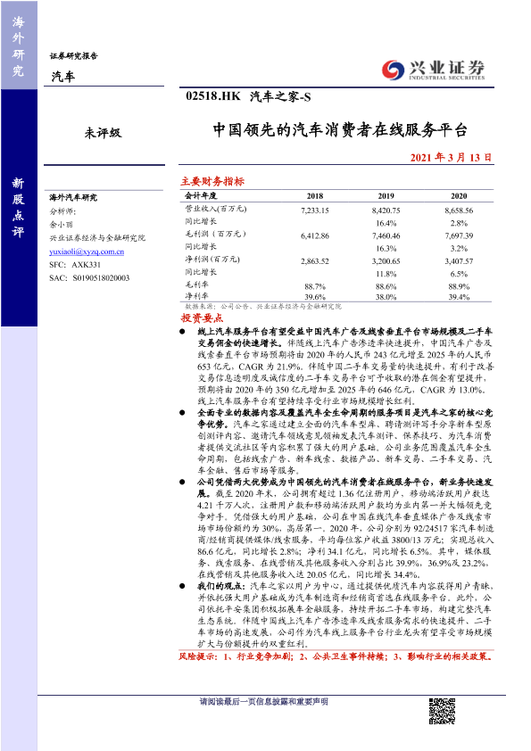 【兴业证券】【20210313】汽车之家:中国领先的汽车消费者在线服务平台-20页