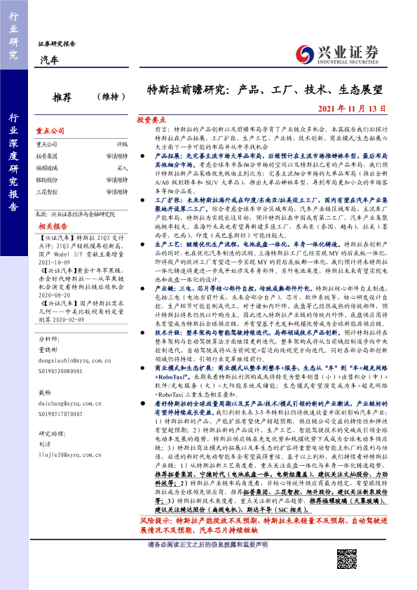 【兴业证券】【20211113】2021.11.13-汽车行业特斯拉前瞻研究:产品、工厂、技术、生态展望-46页