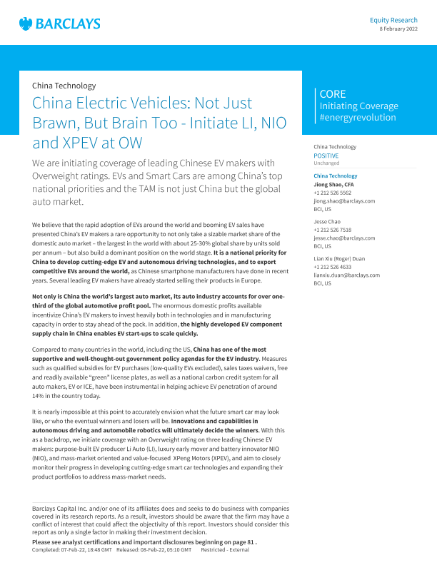 【巴克莱】【20220208】中国电动汽车行业报告-90页