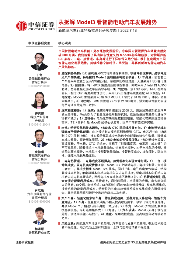 【中信证券】【20220718】从拆解Model3看智能电动汽车发展趋势-94页