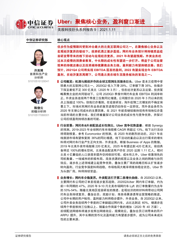 【中信证券】【20210111】Uber:聚焦核心业务,盈利窗口渐进-30页