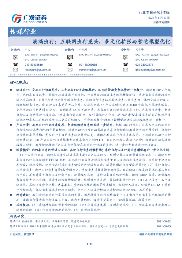 【广发证券】【20210627】滴滴出行:互联网出行龙头,多元化扩张与营运模型优化-51页