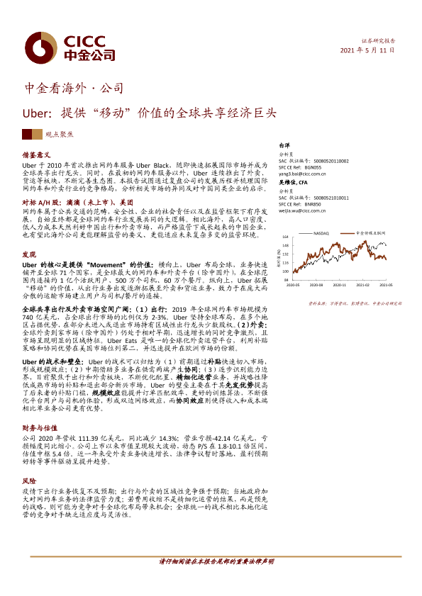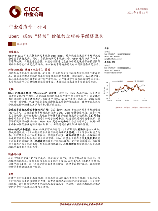 【中金公司】【20210511】Uber:提供“移动”价值的全球共享经济巨头-33页