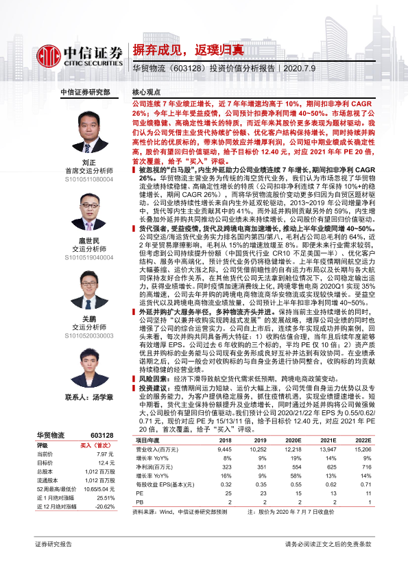 【中信证券】【20200709】2020.07.09-华贸物流:摒弃成见,返璞归真-25页
