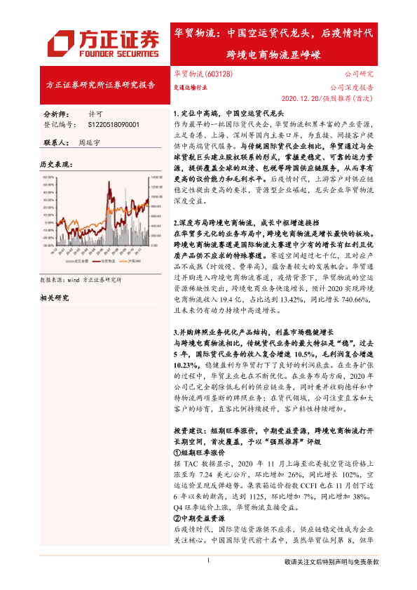 【方正证券】【20201220】华贸物流:中国空运货代龙头,后疫情时代跨境电商物流显峥嵘-32页