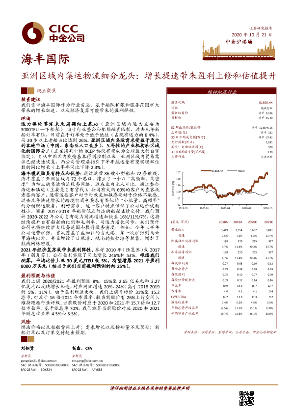 【中金公司】【20201021】亚洲区域内集运物流细分龙头:增长提速带来盈利上修和估值提升-28页