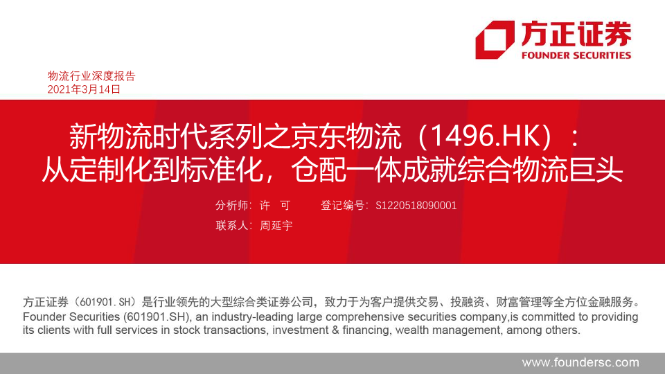 【方正证券】【20210314】新物流时代系列之京东物流:从定制化到标准化,仓配一体成就综合物流巨头-49页