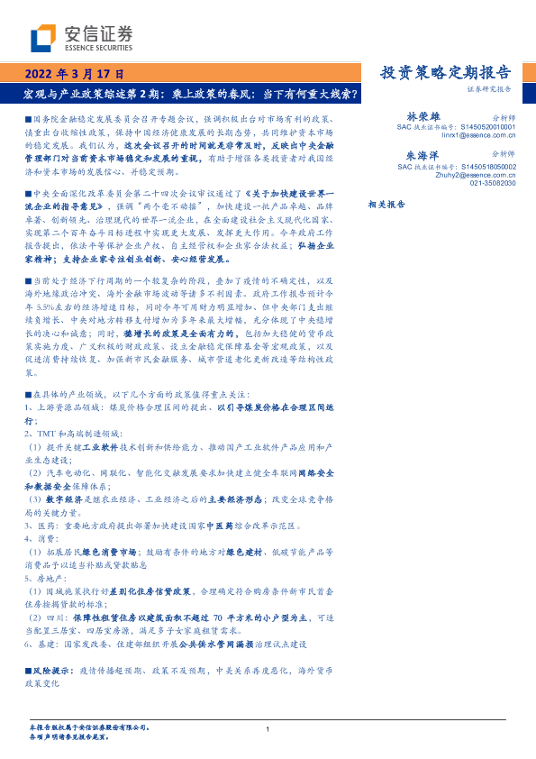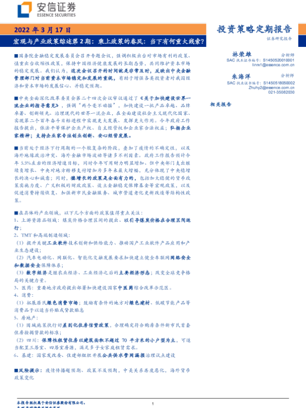 【安信证券】【20220317】宏观与产业政策综述第2期:乘上政策的春风,当下有何重大线索?-34页