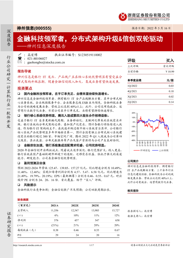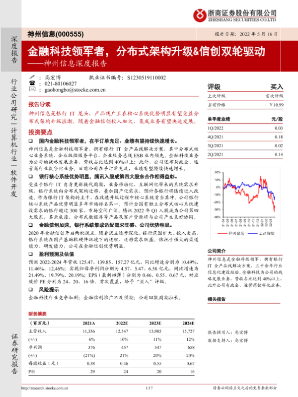 【浙商证券】【20220516】神州信息:金融科技领军者,分布式架构升级&信创双轮驱动-17页