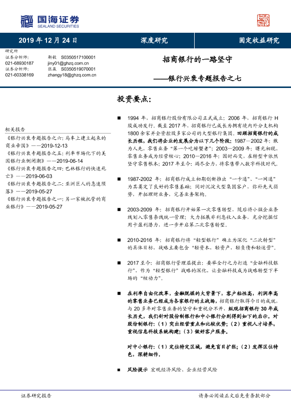 【国海证券】【20191224】银行兴衰专题报告之七:招商银行的一路坚守-17页