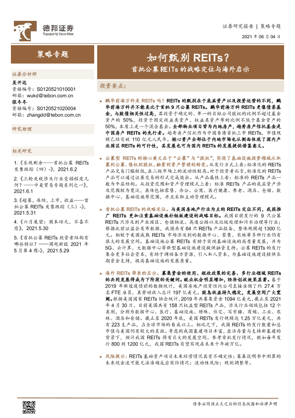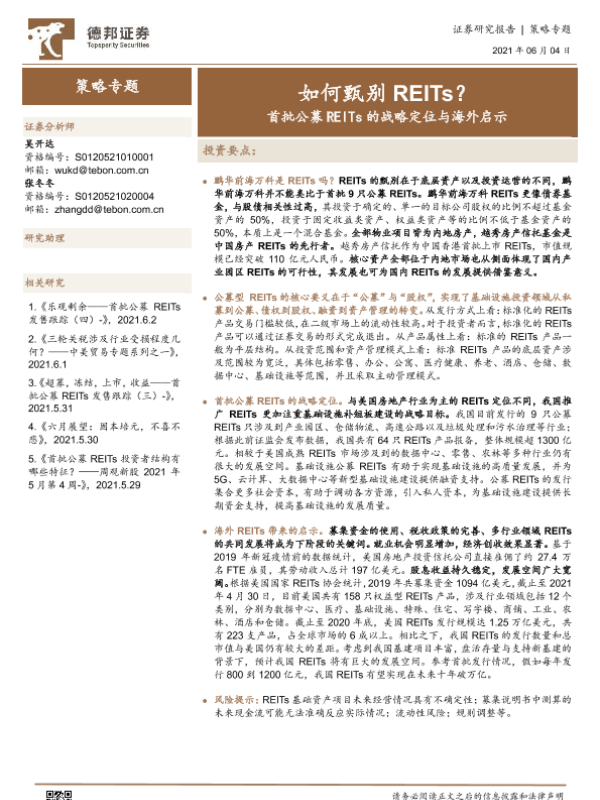 【德邦证券】【20210604】首批公募REITs的战略定位与海外启示:如何甄别REITs?-10页
