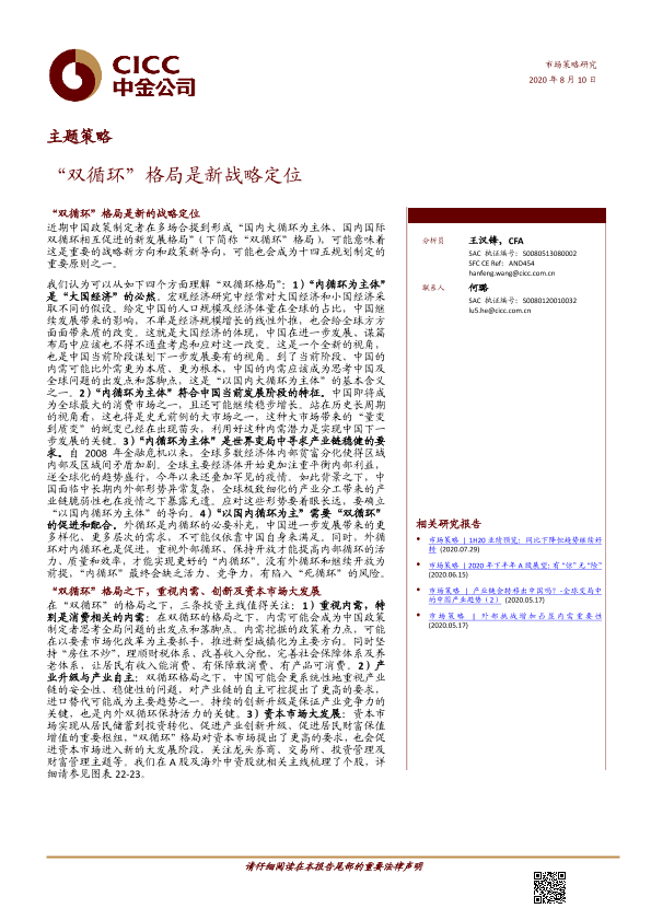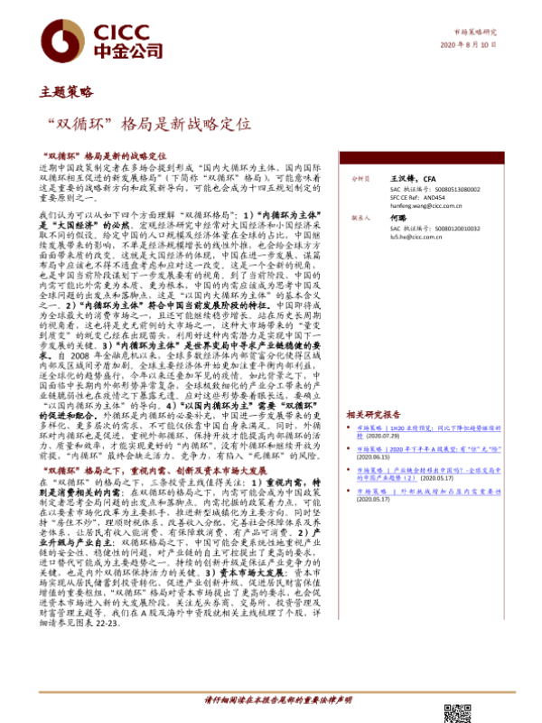 【中金公司】【20200810】2020.08.10-主题策略:“双循环”格局是新战略定位-18页