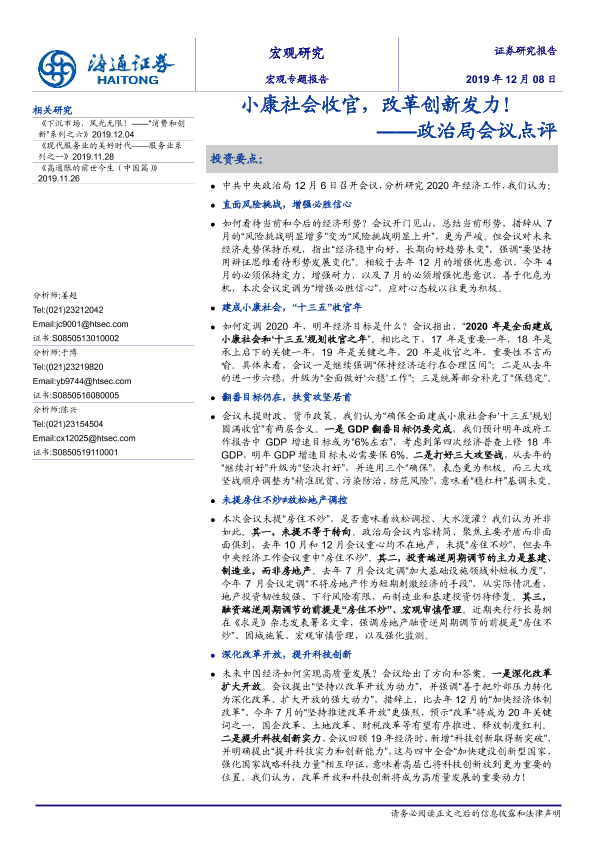 【海通证券】【20191208】2019.12.08-政治局会议点评:小康社会收官,改革创新发力!-11页