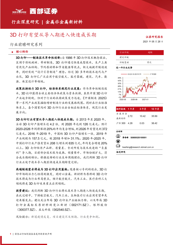 【西部证券】【20210528】3D打印有望从导入期进入快速成长期-58页