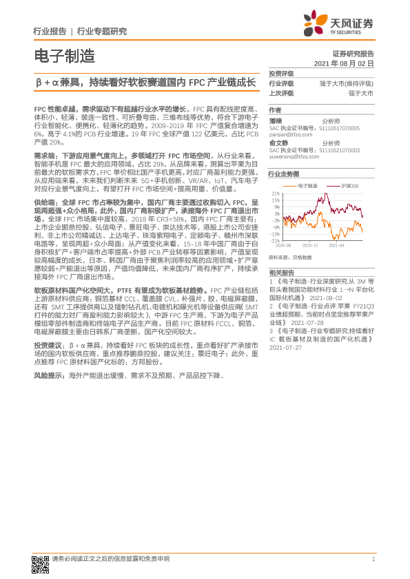 【天风证券】【20210802】电子制造行业:β+α兼具,持续看好软板赛道国内FPC产业链成长-24页