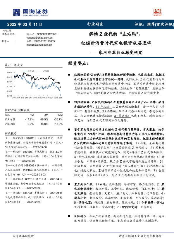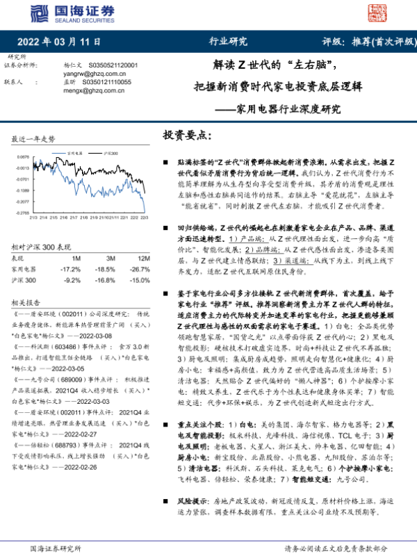【国海证券】【20220311】家用电器行业深度研究:解读Z世代的“左右脑”,把握新消费时代家电投资底层逻辑-51页