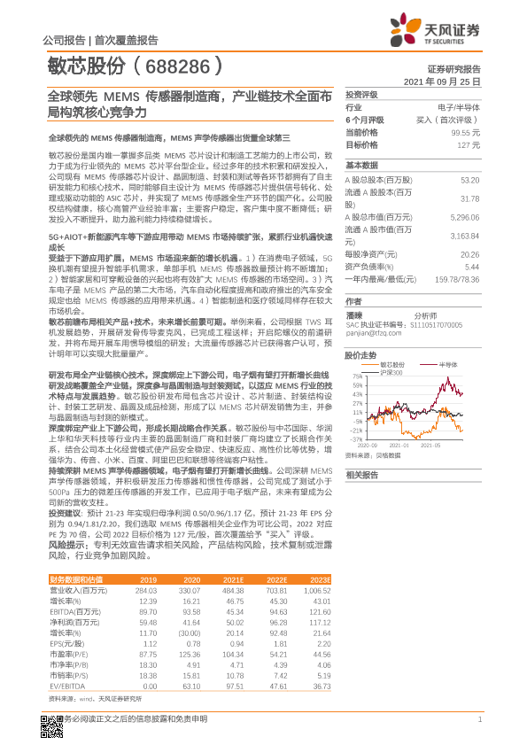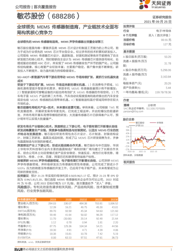 【天风证券】【20210925】2021.09.25-敏芯股份:全球领先MEMS传感器制造商,产业链技术全面布局构筑核心竞争力-27页