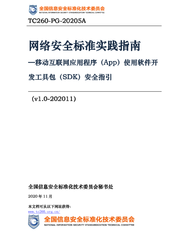 【全国信息安全标准化技术委员会秘书处】【202011】2020.11-App使用软件开发工具包(SDK)安全指引-21页