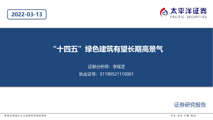 【太平洋证券】【20220313】建筑行业:“十四五”绿色建筑有望长期高景气-21页