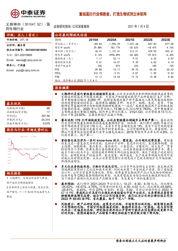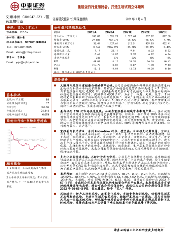 【中泰证券】【20220104】义翘神州:重组蛋白行业领跑者,打造生物试剂立体矩阵-23页